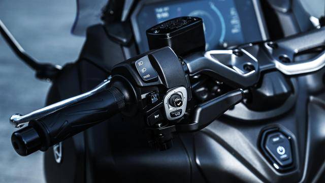 5、在現(xiàn)有的 D-MODE 可選騎行模式、牽引力控制系統(tǒng)的基礎(chǔ)上,2025 TMAX 系列的電子輔助控制系統(tǒng)、新增了名為 BC(Brake Control,制動控制)的新系統(tǒng)。該系統(tǒng)實際上就是平時被稱之為彎道 ABS 的制動輔助控制系統(tǒng),該系統(tǒng)最初是 Yamaha 為高性能的 Supersport 跑車系列而開發(fā)的,與 TMAX 現(xiàn)有的 ABS 系統(tǒng)配合使用,由 IMU 激活,能夠在不同的速度、傾斜角度和路況下提供最佳的制動性能;