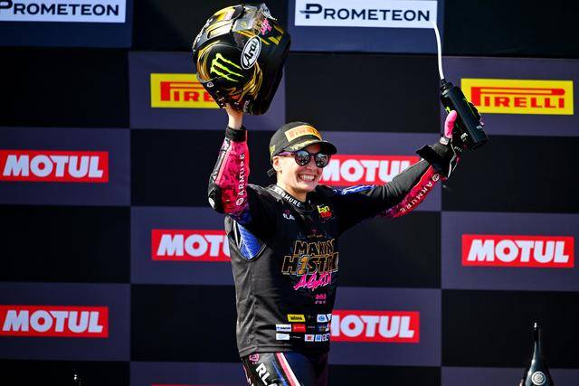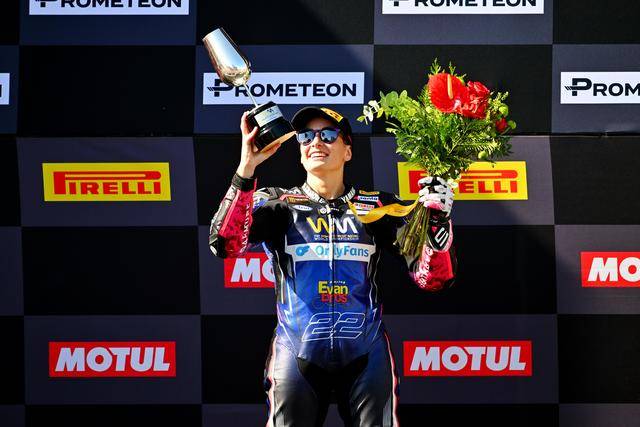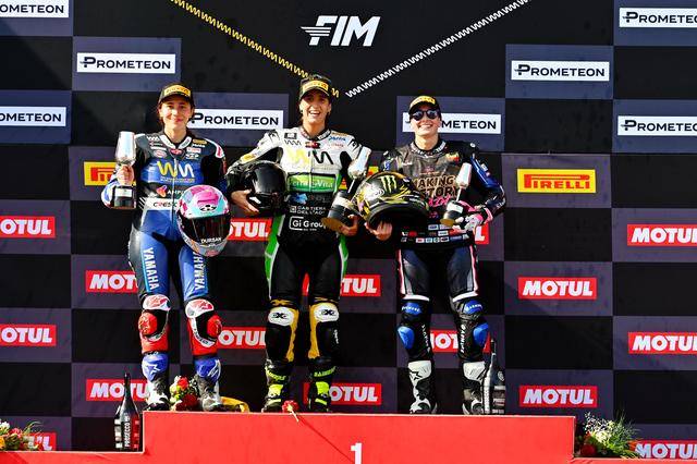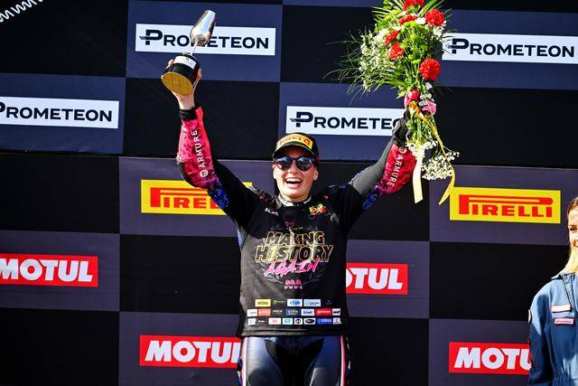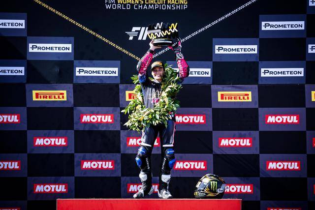 第一節(jié)比賽,赫雷拉奪得了第一、卡拉斯科拿到了第二,兩人之間的積分差距縮小到 13 分,冠軍仍懸而未決;第二節(jié)比賽,隨著赫雷拉在比賽最后階段的摔車,以第三名完賽的卡拉斯科,最終奪得了首屆 FIM WorldWCR 女子公路賽車世界錦標賽的世界冠軍 —— 這是卡拉斯科的第二個世界冠軍頭銜,她在 2018 年奪得了 WorldSSP300 級別的世界冠軍,成為了 FIM 在公路型世界大賽里(不區(qū)分男性和女性運動員)、第一位(也是目前唯一一位)拿到世界冠軍頭銜的女車手。
