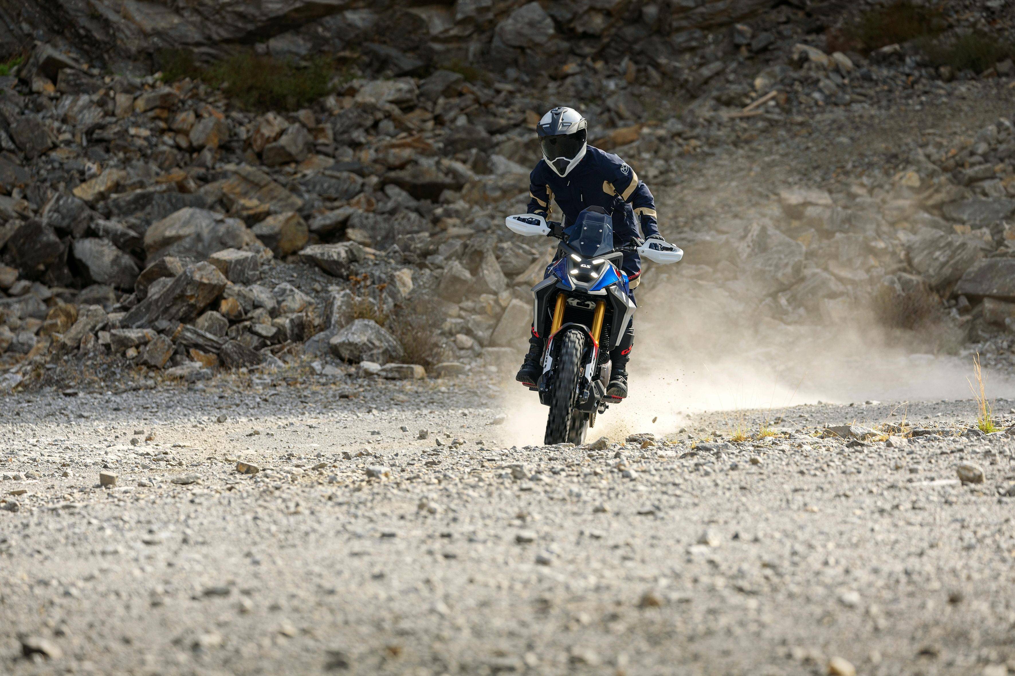 3、車體采用一副鋼管式的車架,全可調的倒立式前叉和后減震;在整體設計上,借鑒了寶馬摩托過去在拉力賽和 Enduro 耐力越野賽的技術、經(jīng)驗,并實現(xiàn)了 A2 級別車型所限定的、175 公斤的最低重量要求,從而為客戶提供了充滿動感的、不論是公路還是越野狀態(tài)下的騎行樂趣;