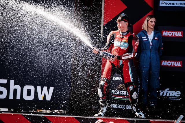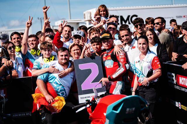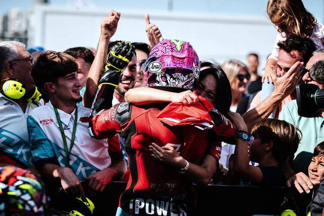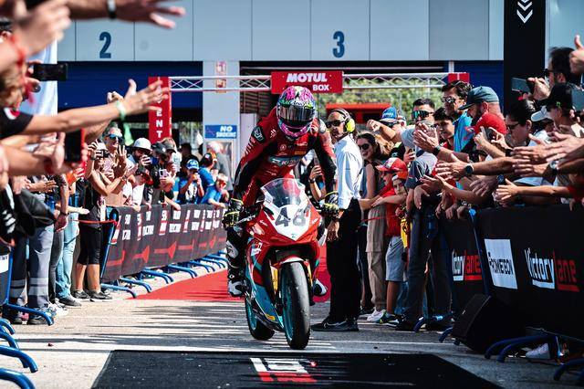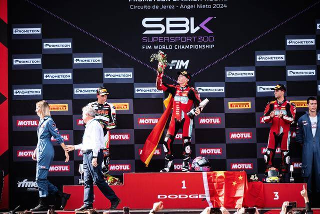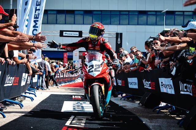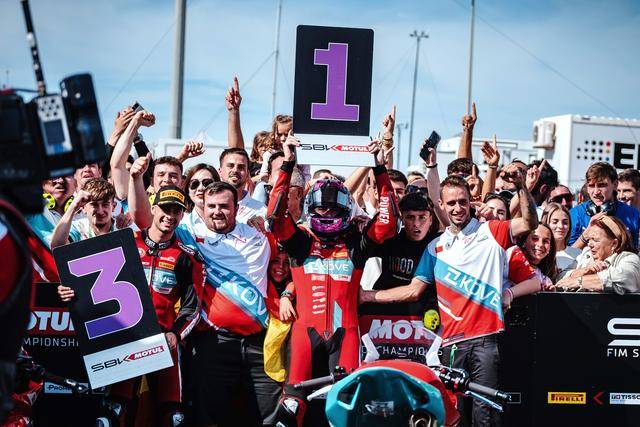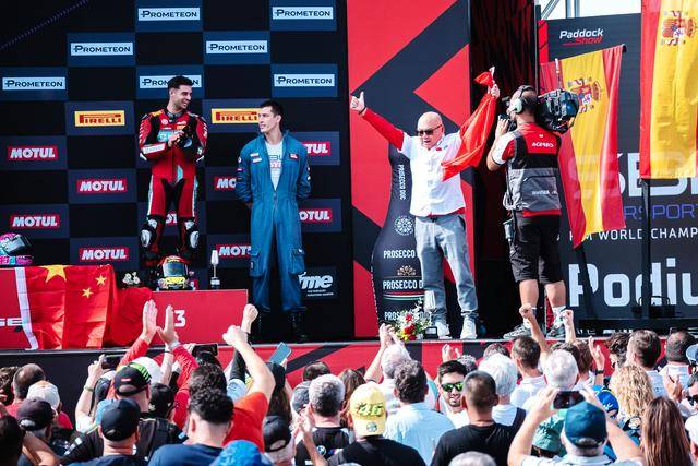 第二節(jié)的比賽是 WorldSSP300 在本賽季的最后一場角逐,11 圈的較量讓人看得熱血沸騰、心跳加速。在無數(shù)次的位置交換、超越與反超越之后,M. 加西亞在最后一圈的最后一個彎的全力一擊,成為了打破在此前比賽里、總是與冠軍近在咫尺卻始終無法突破的重要因素 —— J. 加西亞最終率先沖線,以 0.028 秒的微弱擊敗對手優(yōu)勢奪得了冠軍;緊隨其后的 M. 加西亞落后隊友僅 0.23 秒、奪得了季軍。在 2024 賽季的最后一場比賽里,兩位車手,雙雙登上了頒獎臺,并歷史性的首次站到了頒獎臺的頂端。