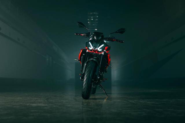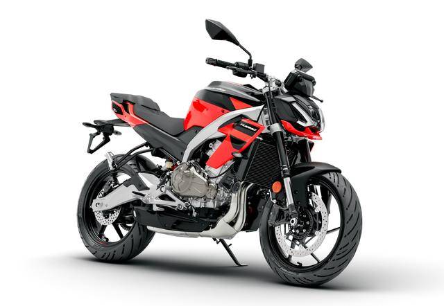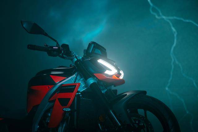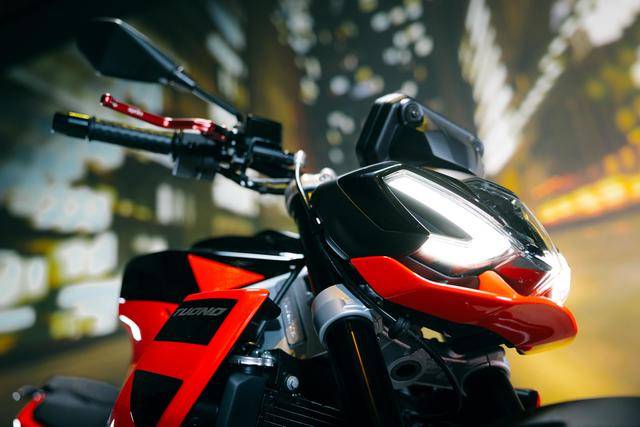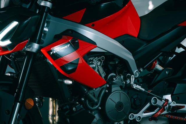 3、車架、發(fā)動機完全外露的運動街車外觀造型。有別于 Tuono 125、Tuono 660 和 Tuono V4,新的 Tuono 457 是該系列里面、唯一沒有配備車頭整流罩的車型;