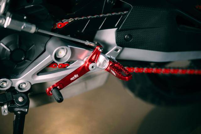 5、與 RS 457 相同的電子輔助控制系統(tǒng):標配了電子控制油門,牽引力控制系統(tǒng),三個可選(ECO 節(jié)能、Sport 運動、Rain 雨天)的騎行模式。另外,用戶還可選裝 AQS(Aprilia Quick Shift)雙向(升檔和降檔)快速換檔系統(tǒng);