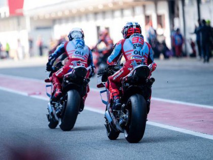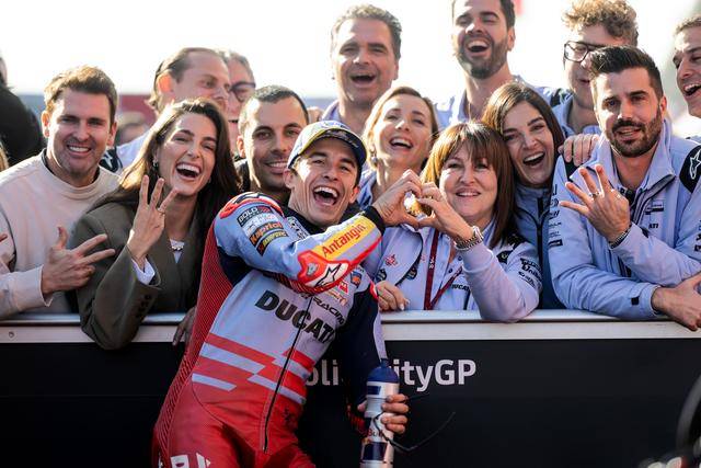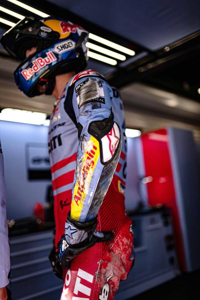 昨天周末(十一月 16 日),MotoGP級別的 Q2 排位賽,馬昆斯跑出了 1 分 38.798 秒的個人最佳圈速,拿到了發(fā)車位置的第三,將在隨后的 Sprint短途沖刺賽和周日進(jìn)行的正賽里、從第一排發(fā)車;小馬昆斯發(fā)生了摔車意外,在 Q2 僅跑了 5 圈(注:其他大部分車隊都跑了 8 到 9 圈),最終以 1 分 39.252 秒的圈速、排在第十一位發(fā)車。