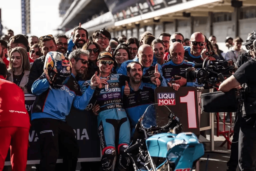 狀態(tài)如日中天的阿隆索,并沒(méi)有辜負(fù)黑金色35周年紀(jì)念涂裝。桿位發(fā)車的他,成功貫徹賽前的既定戰(zhàn)術(shù),在最后一場(chǎng)Moto3比賽中一騎絕塵,霸氣奪冠。阿隆索用單賽季14勝為自己的2024賽季畫(huà)上了完美的句號(hào)。也打破了 馬克·馬奎斯在2014年創(chuàng)造的單賽季13勝的記錄,讓自己成為了MotoGP所有組別中單賽季勝場(chǎng)最多的車手。