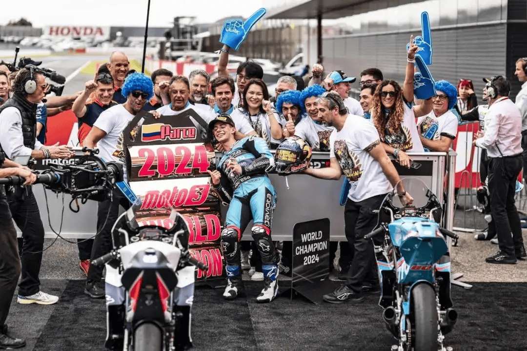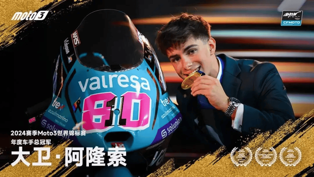 2024賽季,CFMOTO Aspar車隊(duì)在Moto3組別,共計(jì)獲得14勝、15個(gè)領(lǐng)獎(jiǎng)臺(tái)、7個(gè)桿位、466個(gè)積分,包攬了年度車手總冠軍、年度車隊(duì)總冠軍、年度制造商總冠軍,實(shí)現(xiàn)了賽季大滿貫。在如此榮耀的加成,和賽事計(jì)劃的縝密推進(jìn)下,相信春風(fēng)遲早會(huì)在世界舞臺(tái)上實(shí)現(xiàn),中國(guó)車手和中國(guó)賽車的宏偉目標(biāo)。