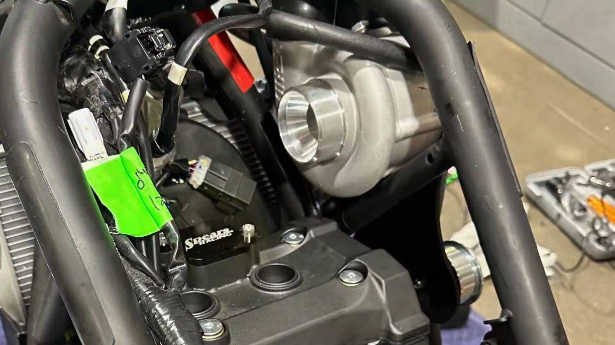 關(guān)鍵就在于加裝了一顆 Rotrex C15-16 離心式增壓器,搭配 JE 鍛造活塞、Carrillo 連桿,以及經(jīng)過 Norton Motorsports 打造的高性能氣門套件,整套組合讓這臺引擎徹底變身。 此外,它還搭載了 aRacer RC Super-X ECU 系統(tǒng),讓引擎輸出可以精準調(diào)校到極致。