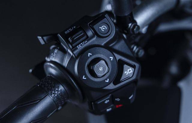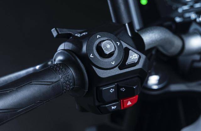 9、全新的、可通過軟件與智能手機連接的 5 英寸 TFT 全彩色數(shù)字式儀表板,輕了 480 克、使車輛的前后慣性降低了大約 4% 的前后全新車輪,新設(shè)計的兩件式鞍座,新的車把兩端開關(guān)按鍵盒等。