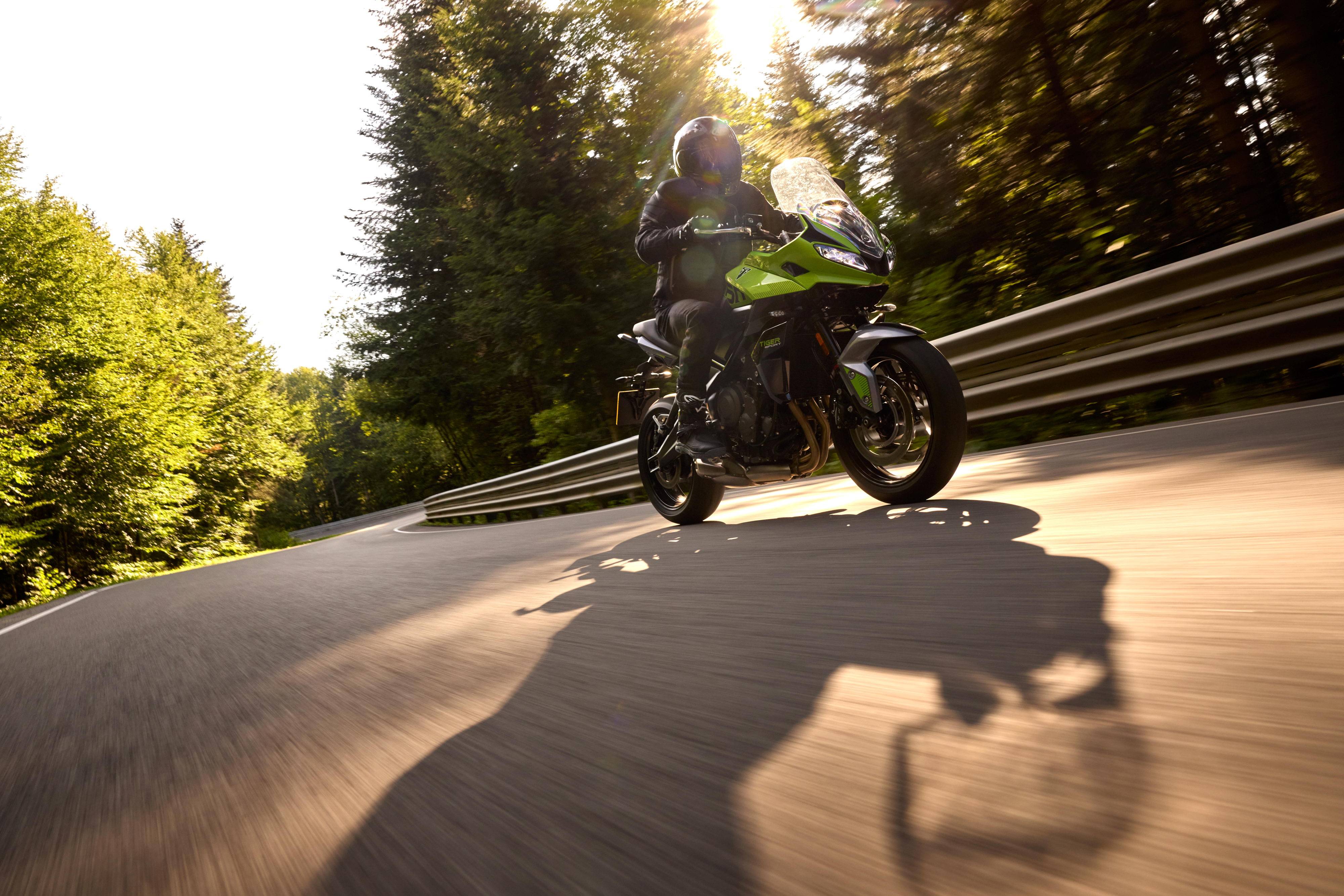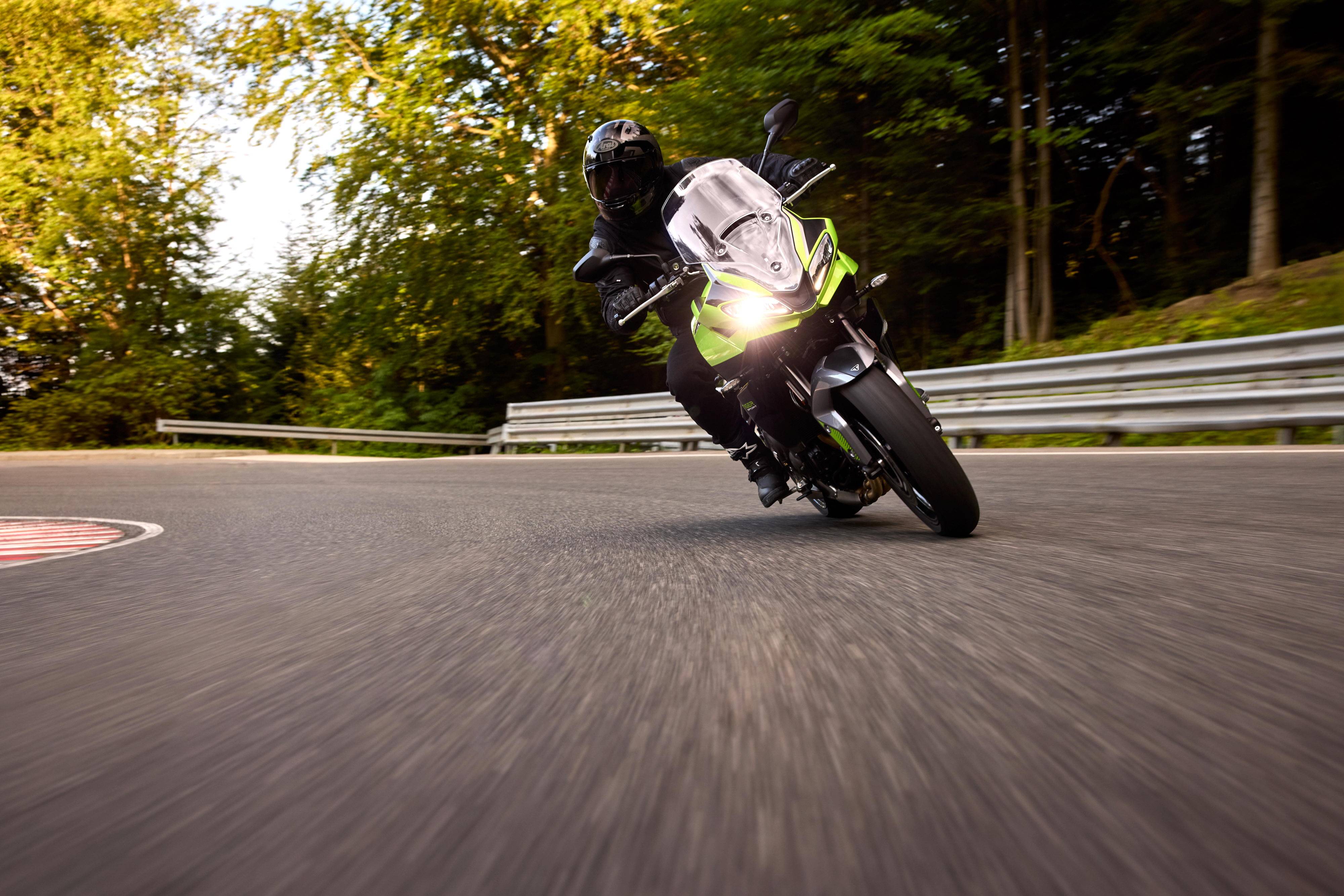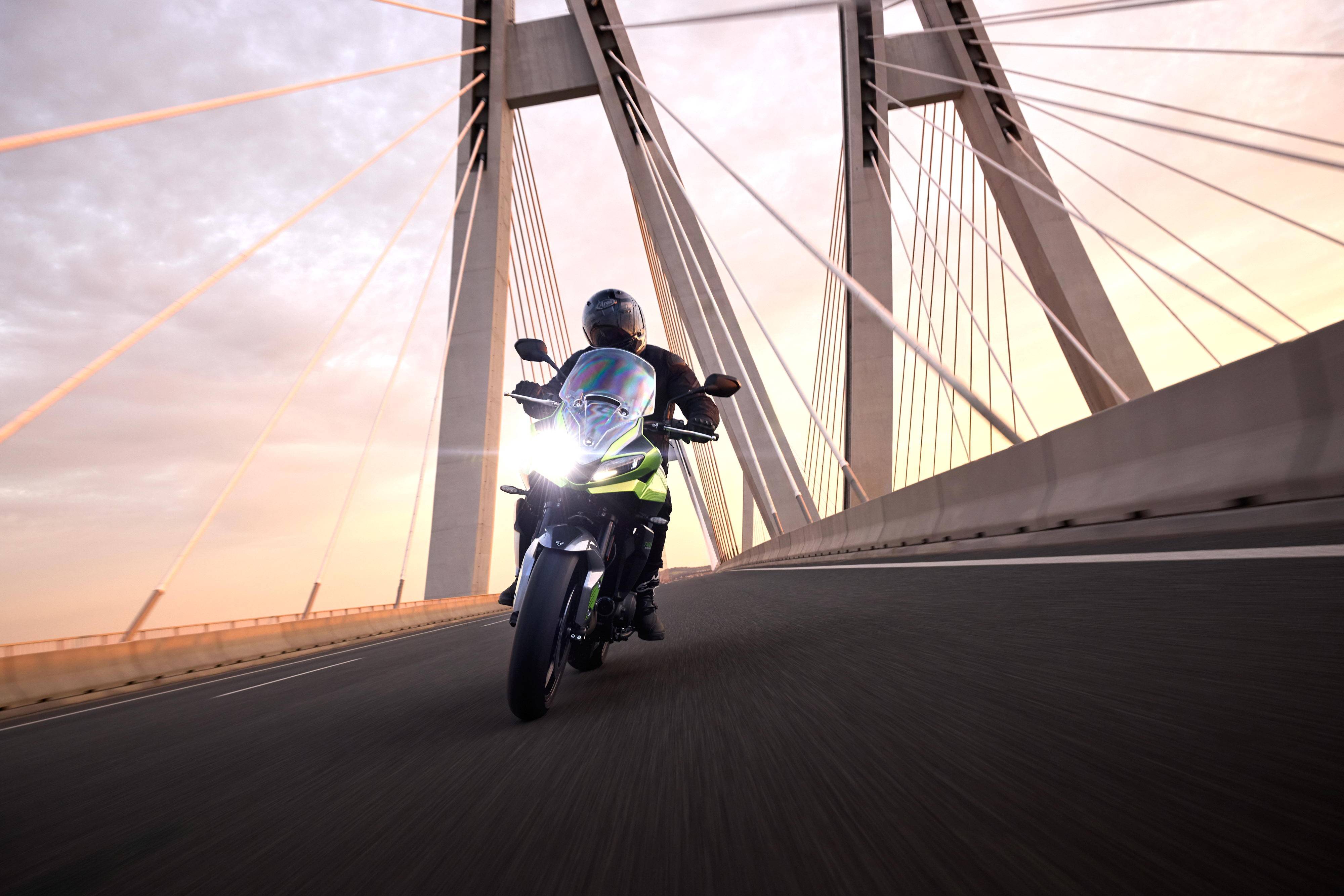 車體方面,采用一副鋼管制的車架、左右不對稱式設計的鋼制后搖臂;Showa 配套的懸掛系統(tǒng),前面是叉芯口徑為 41 mm、行程為 150 mm 的倒立式前叉,后面是行程為 150 mm、帶可調節(jié)功能的單筒式后減震;前雙碟、后單碟的制動系統(tǒng),數(shù)字式的儀表板、全 LED 的燈光系統(tǒng),容量達 17.2 公升的大型油箱,直徑為 17 英寸的前后車輪等。