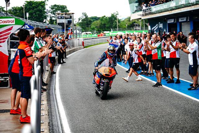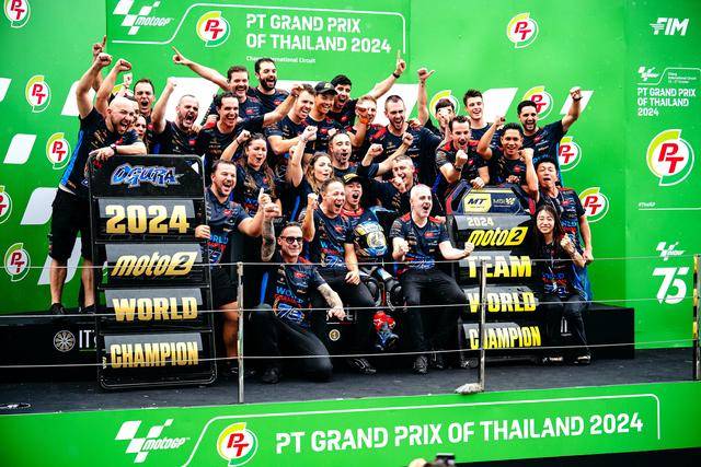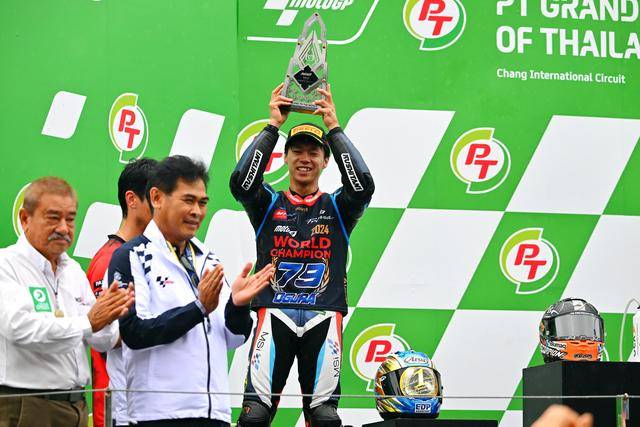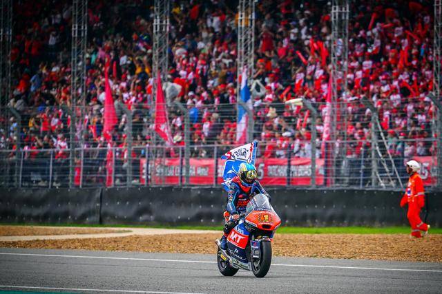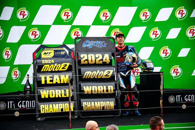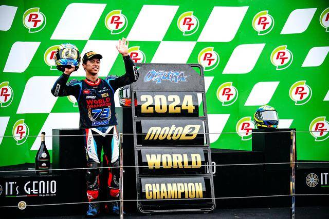 Moto2 級別,日本車手小椋藍(lán)(Ai Ogura)在這場 “ 例行公事 ” 中、以第四名完賽,最終以 274 分奪得了 2024 賽季的世界冠軍(車手年度積分總冠軍)。實際上在此前的泰國站(第十八站)時,他已經(jīng)獲得了足夠的積分優(yōu)勢、提前奪得了他個人職業(yè)生涯的首個世界冠軍頭銜。在整個 2024 賽季,小椋藍(lán)共奪得三個分站冠軍(加泰羅尼亞站、荷蘭站和圣馬利諾站)、全季累計八次登上頒獎臺。盡管分站冠軍的數(shù)字沒有主要對手多,但憑借著持續(xù)穩(wěn)定的發(fā)揮,他最終成為了自 2009 年、青山博一(Hiroshi Aoyama)拿下 WGP250 世界冠軍以來,新一位成功奪冠的日本車手。