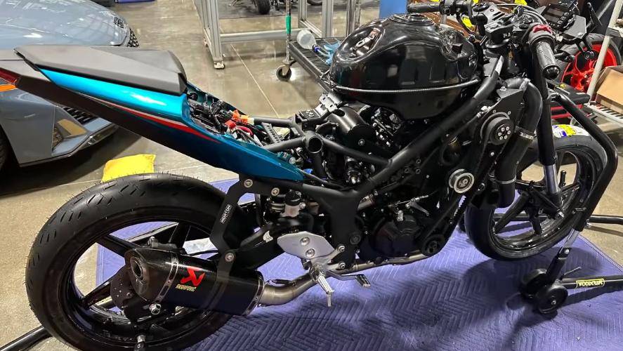 盡管經(jīng)過爆改,這臺YZF-R3增壓版的整體外觀看起來與原廠版本相差無幾,只是加強了后搖臂的強度。這種低調(diào)的外觀,讓這款小跑車在扮豬吃老虎的道路上走到了極致。誰又能想到,這樣一款看似普通的摩托車,竟然擁有著78匹的驚人馬力呢?