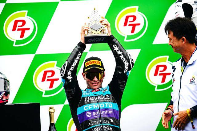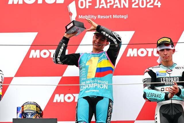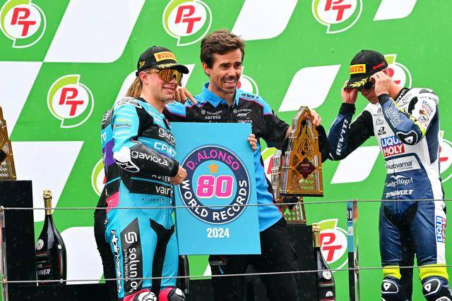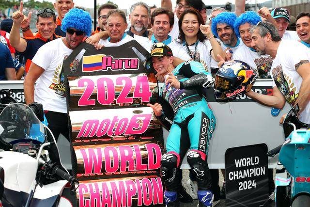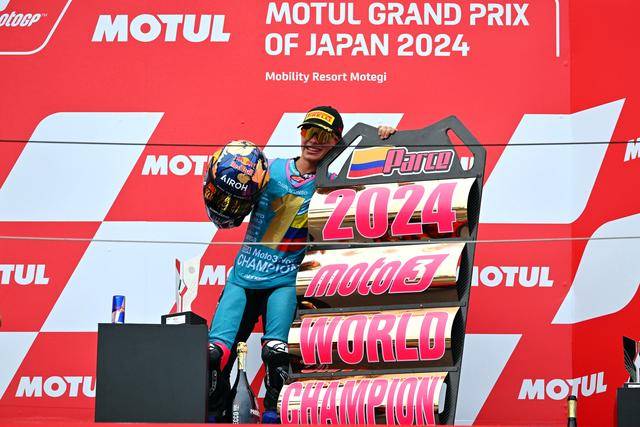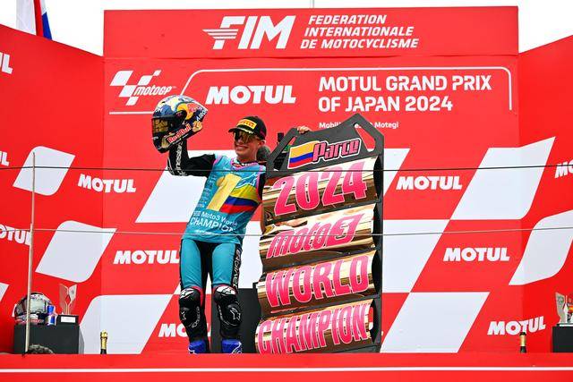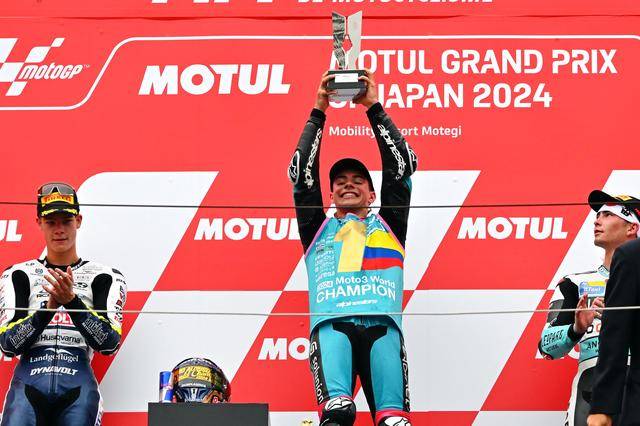 Moto3 級別,西班牙車手阿隆索(David Alonso)拿下了最后一站比賽的冠軍,取得了七連勝、同時也讓自己在今年的分站冠軍總數(shù)達到了破紀錄的十四個。實際上,阿隆索早在十月 6 日的日本站結束后,就已經(jīng)提前奪得了 2024 賽季 Moto3 級別的世界冠軍(車手年度積分總冠軍)。綜合整個賽季,最終以 421 分奪冠的阿隆索,領先亞軍(256 分)達 165 分,全季累計奪得了十四個分站冠軍、十五次登上頒獎臺,且在全部分站比賽里都拿到積分。