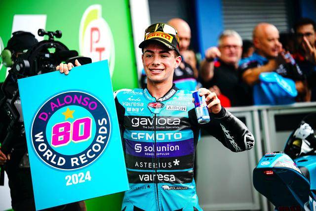 2023 年,阿隆索正式進軍 Moto3,首個賽季就奪得了四個分站冠軍、并成為歷史上第一位能夠在 WGP 登上頒獎臺的哥倫比亞車手,他最終在 2023 賽季獲得了年度總季軍。到了 2024 賽季,他轉為西班牙籍,并最后拿到了個人職業(yè)生涯的首個世界冠軍頭銜。