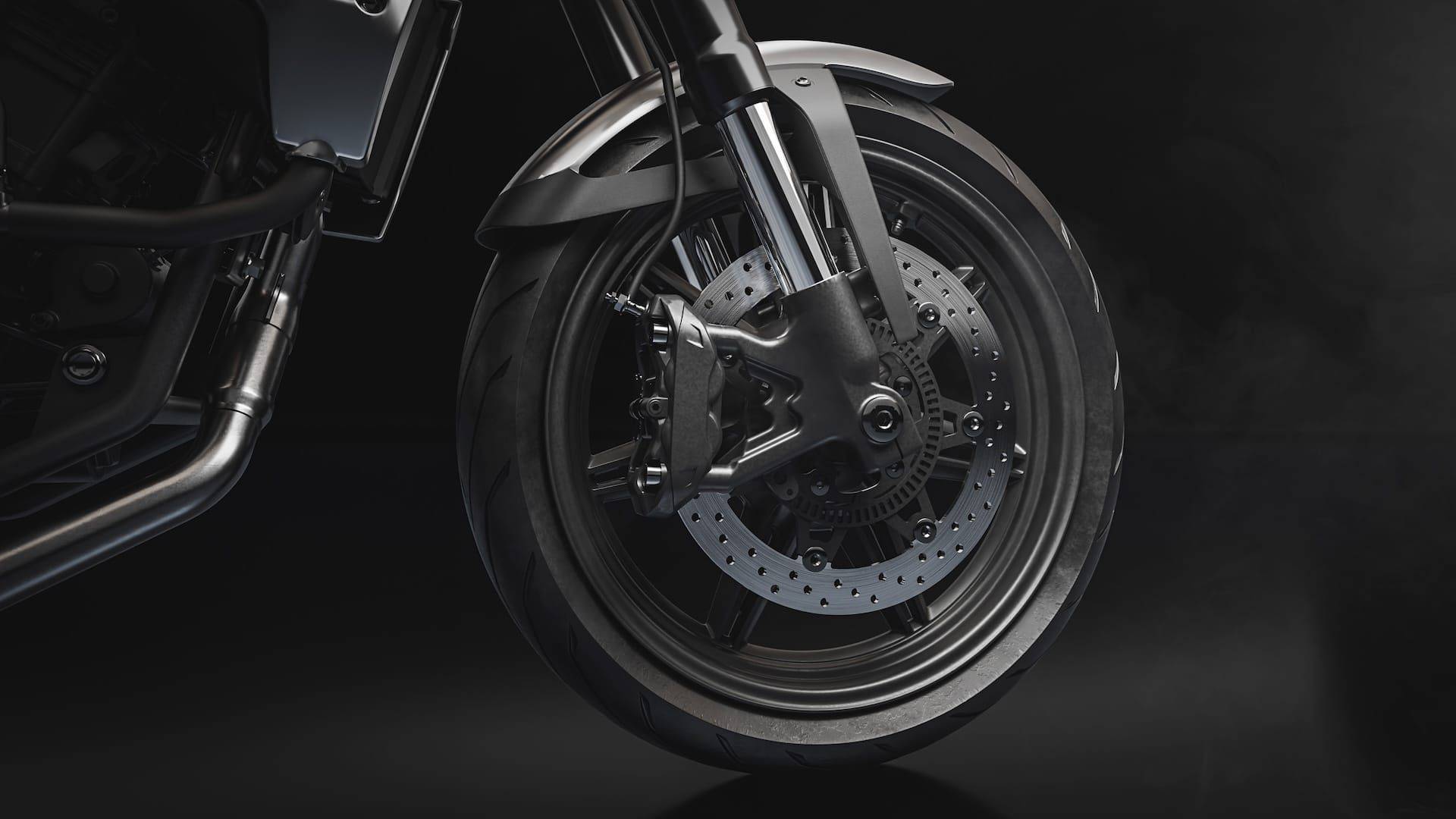 剎車方面,前輪配備 300mm 單碟,并使用固定式四活塞卡鉗; 后輪則搭載 255mm 單碟,并配有雙活塞卡鉗。 車輛還標(biāo)配雙通道ABS系統(tǒng),增強(qiáng)安全性。 輪胎方面,前輪為 110/70-17,后輪則為 150/60-17,提供穩(wěn)定的抓地力。