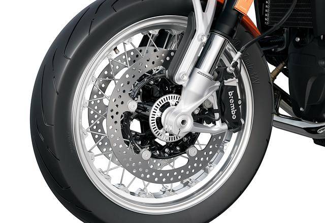 車體方面,采用一副鋼管式車架;定位為復(fù)古跑車的 R 12 nineT,采用叉芯口徑同為 45 mm 的倒立前叉(金色的前叉套筒),具有全可調(diào)功能,單筒式后減震,前、后懸掛系統(tǒng)的行程均為 120 mm;雙圓筒式的儀表板,容量為 16 公升的拉絲鋁制油箱,直徑為 17 英寸的前后車輪、配備了公路運(yùn)動(dòng)型輪胎。電子控制系統(tǒng)方面,配備了可選的騎行模式,牽引力控制系統(tǒng)和發(fā)動(dòng)機(jī)扭矩控制,ABS Pro 等。