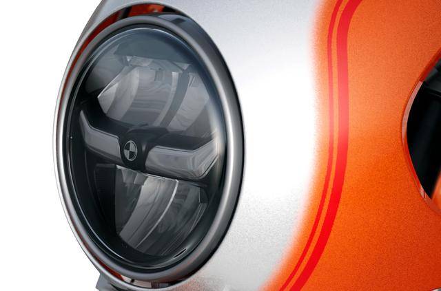 1、橙色為主的車身圖案、帶紅色縫線的鞍座,是用來(lái)傳遞參加 1975 年 AMA Daytona 200 時(shí)的賽車 R 90 S Daytona Orange 的元素;