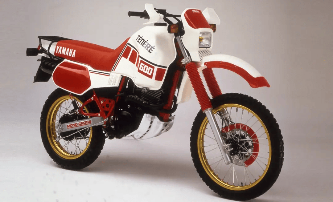 1982年,XT600Z Ténéré在巴黎摩托車展會上亮相,獨特的設計理念和另類的造型令人耳目一新。當時流行的是鼓式制動,XT600Z Ténéré則在前輪配置了新潮前衛(wèi)的盤式制動;前輪配置直徑41mm、空氣輔助減震的 前叉,行程達到255 mm;后輪安裝的是累進式單筒減震器,行程長達235 mm; 發(fā)動機來自大名鼎鼎的XT 550,但是缸徑擴大到95mm,這樣排量達到595 mL,低速 扭矩更加充沛,最大功率可達32.1kW;同時,得益于大單缸的緊湊設計,整車凈質量只有144 kg,騎手在復雜路段能夠更加得心應手地掌控,公路奔跑性能也不錯,最高速度為160 km/h。