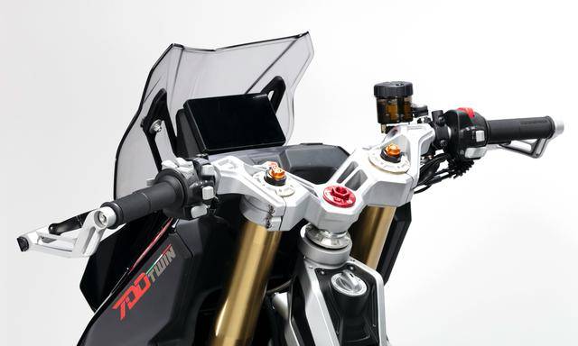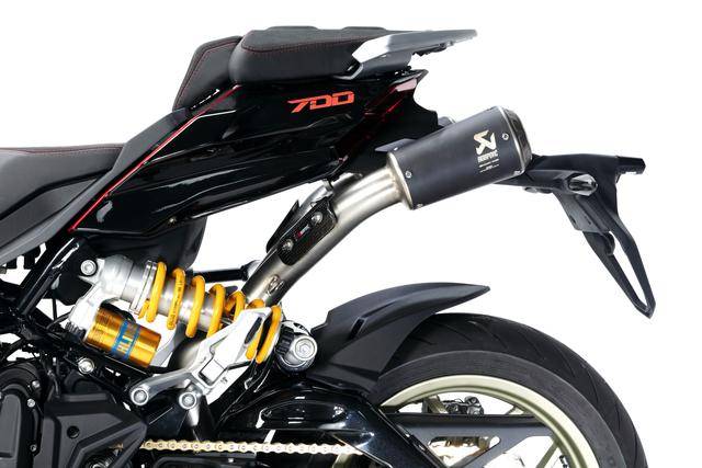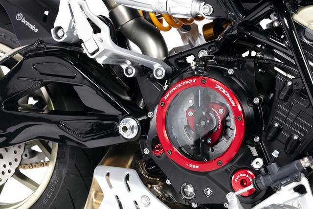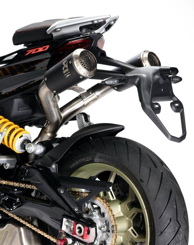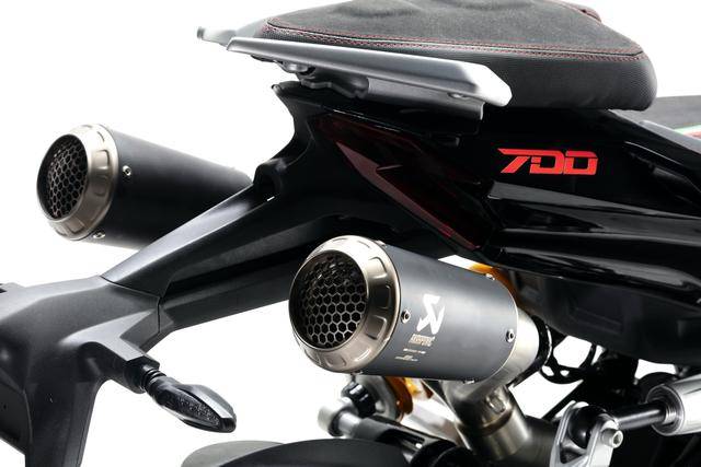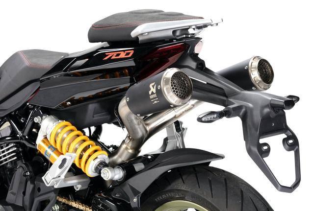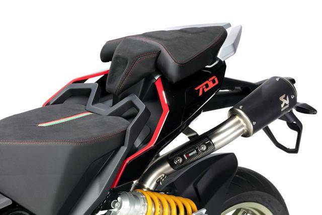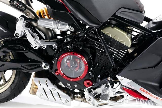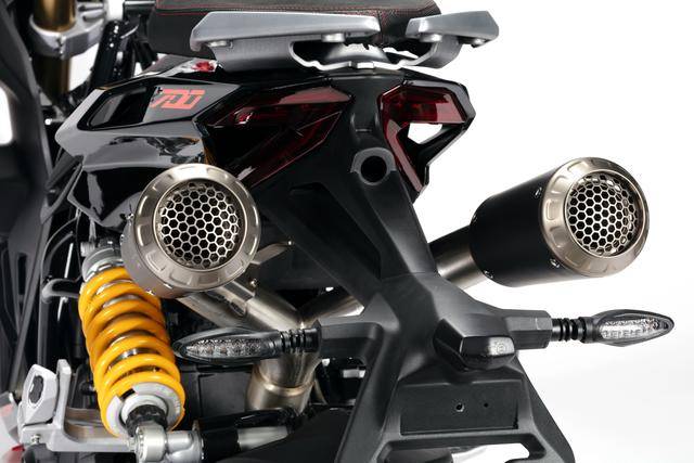 配置與規(guī)格上,意特捷 Dragster 700 Twin 工廠限量版搭載一副水冷四沖程直列兩氣缸的發(fā)動機,排氣量 692 cc,Delphi的電子燃油噴注系統(tǒng),六檔的變速齒輪箱,標配 Akrapovic阿克拉波維奇的鈦合金排氣系統(tǒng),最大動力輸出 51kw(約 68 匹)。