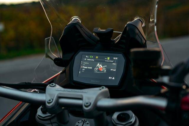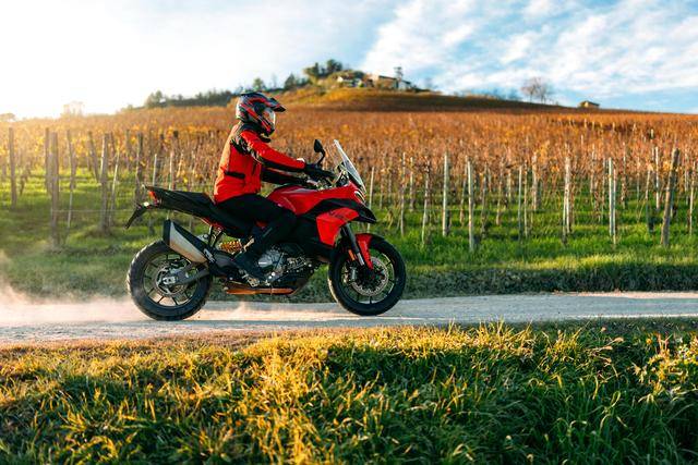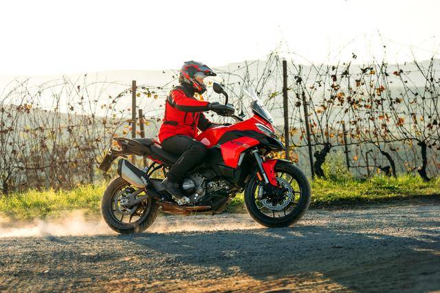 其他的配置,包括 Brembo 布雷博配套的制動系統(tǒng),全新的 TFT 全彩色數(shù)字式儀表板,前 19、后 17 英寸直徑的車輪、在規(guī)格上與第一代 V2 相同,標(biāo)配了 Pirelli倍耐力的 Scorpion Trail II 輪胎。電子輔助控制系統(tǒng)方面,集成了 6 軸的 IMU,標(biāo)配了五個(gè)可選的騎行模式(Sport 運(yùn)動,Touring 旅行,Urban城市,Enduro 越野,Wet 濕地),四個(gè)可選的動力輸出模式(High 高、Medium 中、Low 低、Off-Road 非鋪裝公路/越野),DTC 牽引力控制系統(tǒng),彎道 ABS,DQS 2.0 快速換檔系統(tǒng)等。