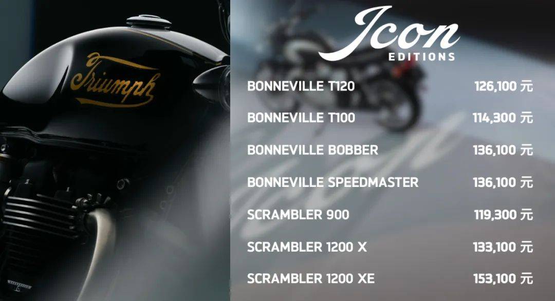 凱旋于2024年推出全新現(xiàn)代經(jīng)典系列“ICON EDITIONS”版本車型,以凱旋1907年的百年經(jīng)典徽標為設計靈感,彰顯品牌深厚歷史與工藝傳承。此次系列共推出7款車型,包括Bonneville T100、Bonneville T120、Bonneville Bobber、Bonneville Speedmaster、Scrambler 1200 XE、Scrambler 1200 X和Scrambler 900,為騎士提供更多個性化選擇,致敬經(jīng)典與現(xiàn)代的完美融合。Rocket 3 Storm,225900元起