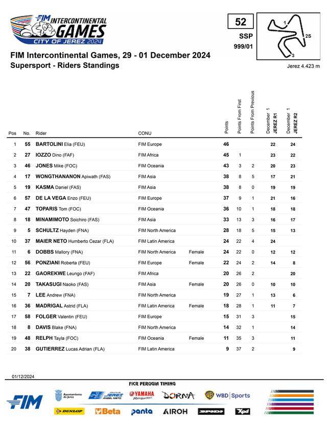 十一月 29 日 - 十二月 1 日,F(xiàn)IM 國際摩聯(lián)首屆洲際運(yùn)動會(FIM Intercontinental Games,簡稱 ICG)在西班牙捷雷斯(Jerez)賽車場舉行。舉辦 ICG 這一構(gòu)想、早在 2002 年的時(shí)候就已經(jīng)被提出,但直到二十多年之后才正式實(shí)現(xiàn)。賽事將以舉辦城市作命名,首屆 ICG 的比賽名為捷雷斯洲際運(yùn)動會(City of Jerez FIM Intercontinental Games),暫定為兩年舉辦一次。