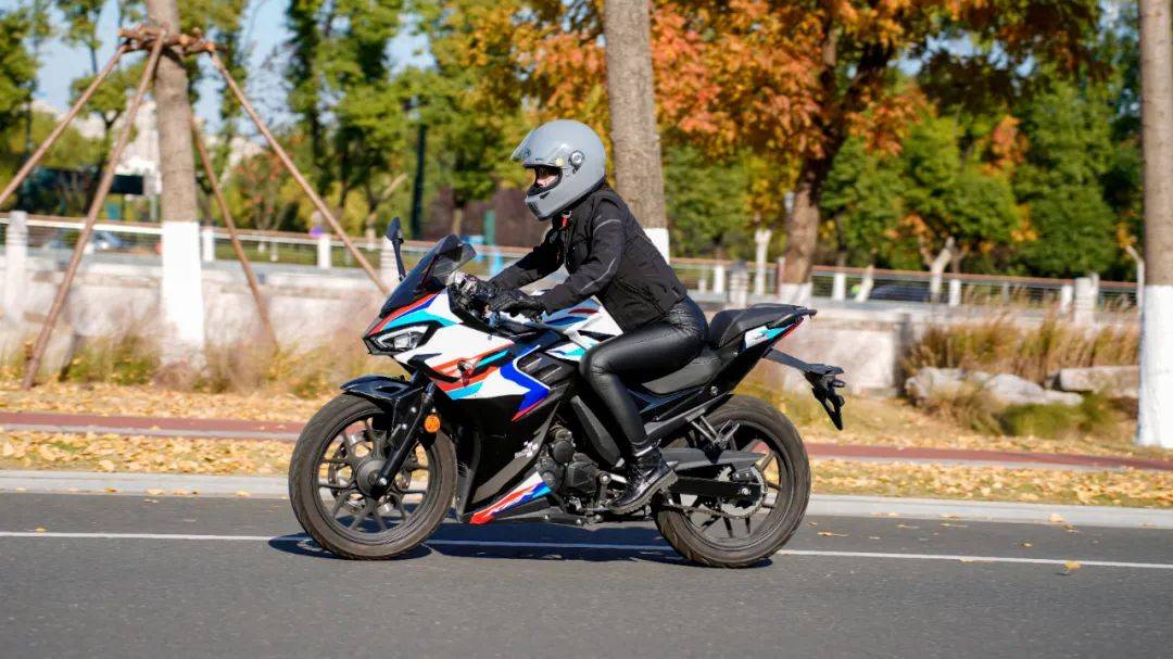外觀硬朗帥氣,造型犀利是力帆KPR250給我的初印象,紅白藍(lán)色的車身配色很酷也很時(shí)尚,整車的造型設(shè)計(jì)非常符合我的審美。坐姿并不戰(zhàn)斗,久騎不累腰,很友好的入門仿賽;而12999元的價(jià)格則是有點(diǎn)驚到我了,而且該有的配置都有,比其他主流的250仿賽要便宜3000元左右,這么香的價(jià)格還有什么好糾結(jié)的?騎車路上,車技再好也會(huì)有讓人害怕的情況,我最怕遇到騎電動(dòng)車的大爺大媽,那隨時(shí)搖擺的車技簡直讓人心里直突突,隨時(shí)做好剎停的準(zhǔn)備。而KPR250給我?guī)砹税踩校?770cm的坐高,對(duì)我174身高的我駕馭起來簡直不要太輕松,遇到急剎停車時(shí)雙腳能穩(wěn)穩(wěn)的踩在地面,妥妥的安全感。嗯,制動(dòng)力也是足夠的,沒有剎不住的感覺。KPR250的動(dòng)力很適合仿賽新手,動(dòng)力不突出屬于普通水平,動(dòng)力銜接不是那么突兀,相對(duì)柔和,對(duì)高速?zèng)]追求,適合我。只是一檔的時(shí)候,稍加油門就會(huì)有發(fā)沖感,要能再絲滑一點(diǎn)就好了,二檔以上就挺順的了。14升的大油箱,一般的郊游、中途都能輕松應(yīng)對(duì)。休假時(shí)也會(huì)騎著KPR250 去遛街,天氣雖然變冷了但是人們對(duì)于大自然的熱愛是絲毫未減。騎著心愛的摩托,在草坪上、在林道間,在河流邊,信馬由韁,隨時(shí)停下來,就是一天的休閑。