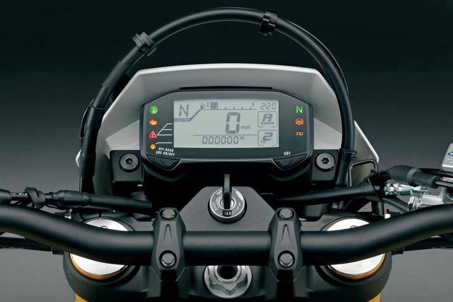 6、兩個車型均配備了電子控制油門,集成式設(shè)計的 S.I.R.S.(Suzuki Intelligent Ride System,Suzuki 智能騎行系統(tǒng)),里面包括了三個模式(Mode A、B、C)可選的 SDMS(Suzuki Drive Mode Selector,Suzuki 騎行模式選擇器)騎行模式、STCS(Suzuki Traction Control System)牽引力控制系統(tǒng),具有可關(guān)閉模式的 ABS(S 版可關(guān)閉前后輪、SM 版僅可關(guān)閉后輪)等;