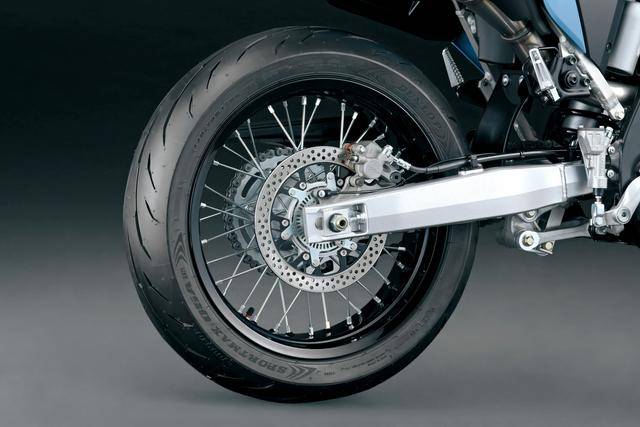 7、人體工程學上,兩個車型的設(shè)計、座姿略有不同。越野規(guī)格的 S 版采用前 21、后 18 英寸直徑的鋼線式車輪、標配 IRC 的輪胎,具有 300 mm 的離地間隙、920 mm 的鞍座高度,整備重量 151 公斤;公路越野規(guī)格的 SM 版,采用前后 17 英寸直徑的鋼線式車輪、標配 Dunlop鄧祿普的輪胎,離地間隙為 260 mm、鞍座高度 890 mm,整備重量 154 公斤;