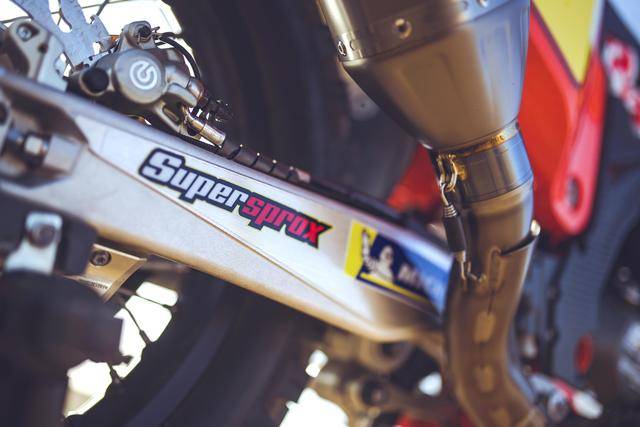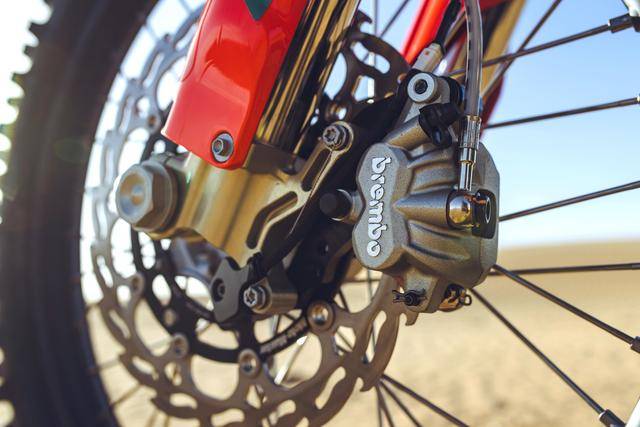 車體方面,采用一副專為拉力賽設(shè)計的鋼制車架,2025 規(guī)格賽車的車架、具有新的縱向和扭轉(zhuǎn)剛度,以提高路面反饋、能量吸收和直線加速時的穩(wěn)定性;WP 配套的賽車懸掛系統(tǒng);經(jīng)過重新設(shè)計的、更銳利的整流罩,配合新的水箱布局和拉力賽專用鞍座,為車手提供了更好的人體工程學(xué)和長距離騎行的舒適度;車體前部有兩個獨立設(shè)計的、容量各為約 9 公升的油箱,作為尾樑(副車架)構(gòu)成組件之一的、是另有一個容量約為 16 公升的油箱,總的燃料攜帶量為 35 公升,三個油箱由兩個單獨的油泵負(fù)責(zé)控制,可各自獨立向車輛供油。