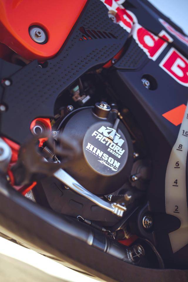 2025 規(guī)格的 KTM 450 Rally 工廠賽車沿用一副水冷四沖程單氣缸、SOHC 四氣閥型式的發(fā)動機,采用了經(jīng)過重新設(shè)計的、針對拉力賽特性的氣缸蓋鈦合金制的氣閥,經(jīng)過強化的離合器、以及特制的六檔變速齒輪箱;散熱系統(tǒng)采用了兩個獨立散熱水箱的設(shè)計,提高了整體散熱效率的同時、也為復(fù)雜的比賽環(huán)境提供多一個保障:即使其中一個損壞、另外一個仍能繼續(xù)工作;而采用了輕量化結(jié)構(gòu)的 Akrapovic阿克拉波維奇排氣系統(tǒng)、經(jīng)過專門的匹配,可讓車輛的性能發(fā)揮至極限。