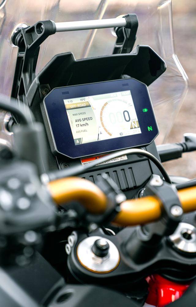 車體方面,采用一副鋼管式的車架,KYB 配套的前后懸掛系統(tǒng),Brembo布雷博的前后制動(dòng)系統(tǒng),全 LED 的燈光系統(tǒng)、數(shù)字式的儀表板,前 21、后 18 英寸車輪;電子輔助控制系統(tǒng),配備了電子控制油門,四種可選的騎行模式,APRC 集成了包括牽引力控制、發(fā)動(dòng)機(jī)制動(dòng)、發(fā)動(dòng)機(jī)油量圖、巡航控制等子系統(tǒng)。