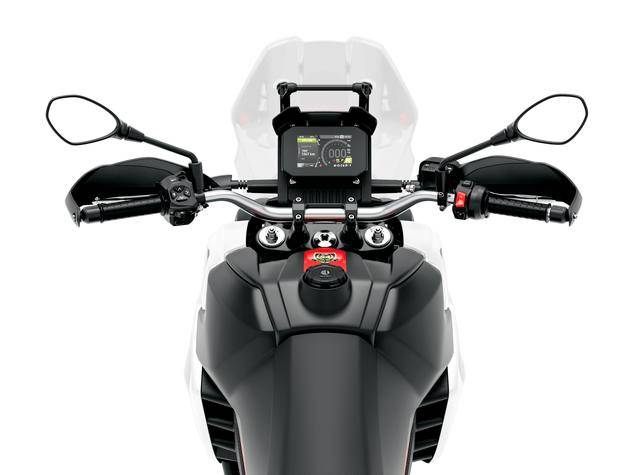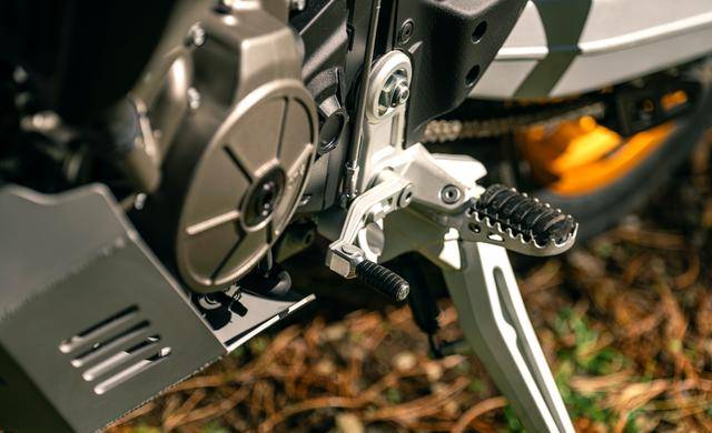 6、拉力版采用了越野風(fēng)格的、高位安裝的前輪擋泥板設(shè)計(jì);此外還有更厚的鋁合金制發(fā)動(dòng)機(jī)底部護(hù)罩,帶金屬芯的車把兩端護(hù)手罩,底部觸地面積更大的側(cè)腳架、即使在粗糙或柔軟的表面上也能提供穩(wěn)定的支撐;