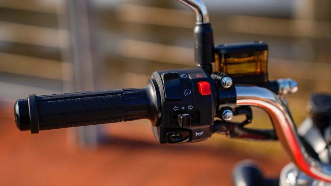 通用手把按鍵,按壓以及阻尼質(zhì)感都屬于常規(guī)水準(zhǔn),值得注意的由于傳動方式的改變,左右手把全為剎車手柄,左后右前的方式,且兩個(gè)制動手柄均可調(diào)。