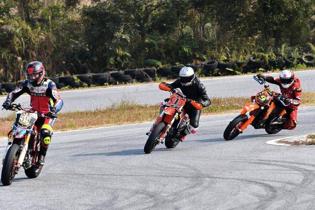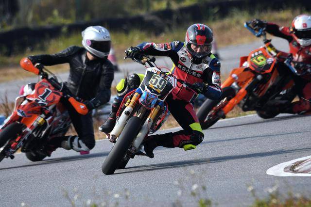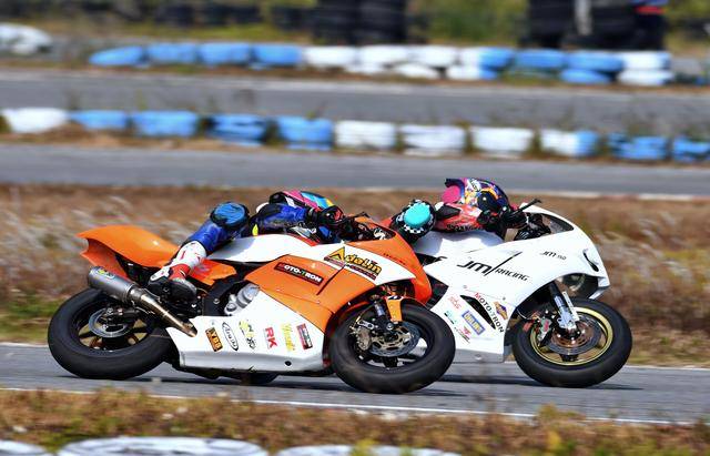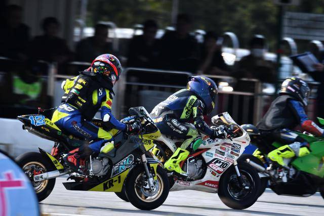 改裝街車單缸組、兩節(jié)比賽都是讓人眼花繚亂的大混戰(zhàn),83 號車的周峻熙、12 號車的蘇子弦、94 號車的鄭偉雄,三位車手在不同的競賽環(huán)節(jié)里、都分別跑出了一個破55.274秒紀(jì)錄的圈速。最終,周峻熙兩戰(zhàn)全勝、奪得了冠軍,蘇子弦、97 號車的陳鏡波分別拿到了亞軍、季軍。