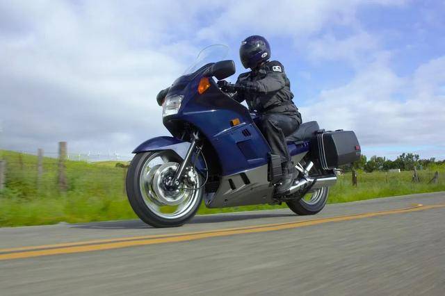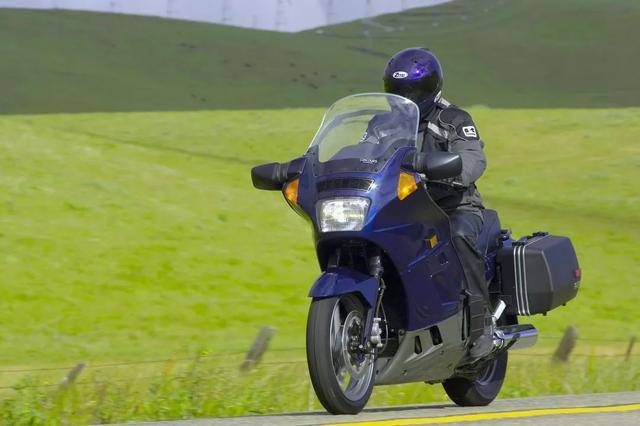 以此為名,1986年川崎以Ninja 1000R為基本平臺(tái),推出了運(yùn)動(dòng)旅行車Concours。川崎工程師針對(duì)運(yùn)動(dòng)旅行定位作了調(diào)整,比如以32mm口徑的化油器替代了36mm化油器,凸輪輪廓修改得比較緩和,目的是強(qiáng)化中低轉(zhuǎn)速范圍內(nèi)的扭矩輸出;驅(qū)動(dòng)方式改用傳動(dòng)軸來替代鏈條,長(zhǎng)壽命、免維護(hù),讓長(zhǎng)途旅行變得更省心舒適;車架作了深度修改,再加持預(yù)載可調(diào)的41mm前叉和空氣壓力輔助的Uni-Trak后減震器,在維持比較靈活的操控性能同時(shí),能更好地勝任旅行重任;安裝了高位風(fēng)擋和全包式導(dǎo)流罩,為騎手和乘客提供完善的防風(fēng)保護(hù);油箱容積很大,可以容納28L汽油,解除騎手夜以繼日長(zhǎng)途奔馳的續(xù)航之憂;匹配了旅行側(cè)箱,提供較大的儲(chǔ)物空間等。