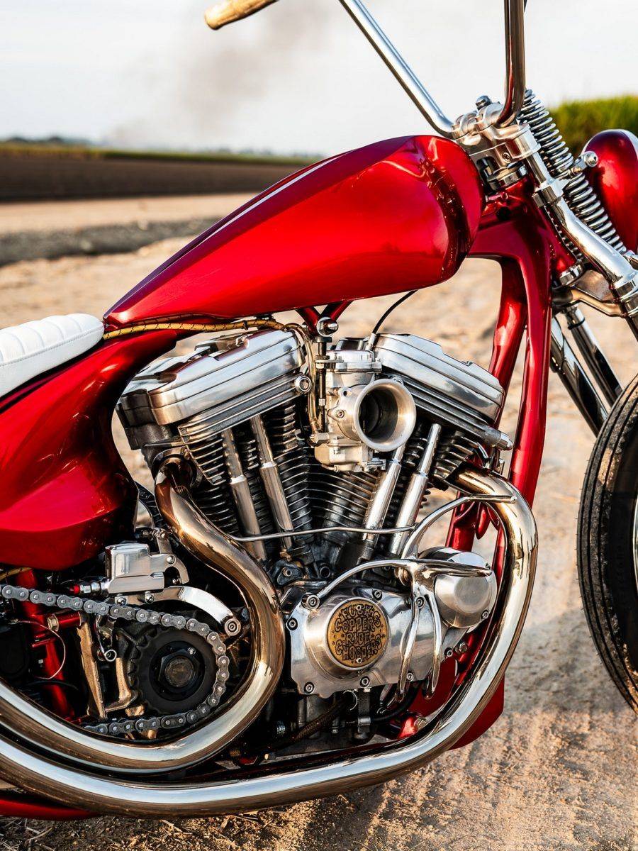 為了進(jìn)一步提升性能,他將原廠的皮帶傳動(dòng)改為鏈條傳動(dòng),同時(shí)安裝了Daytona Twin Tec點(diǎn)火系統(tǒng),確保穩(wěn)定且強(qiáng)勁的火花。 為了賦予這輛Chopper更濃厚的復(fù)古氛圍,他還加裝了腳踩式離合器和手動(dòng)排檔桿,這樣的配置在現(xiàn)代摩托車中已經(jīng)相當(dāng)罕見。 整輛車的硬尾車架則來自Paughco,這是一個(gè)以高品質(zhì)摩托車架聞名的品牌。