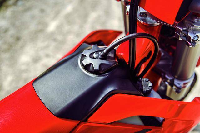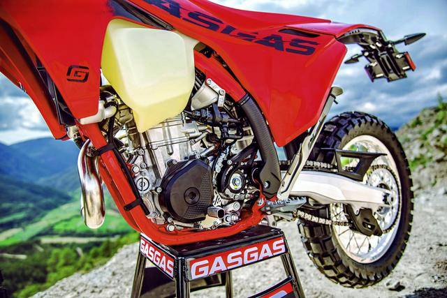 在基本規(guī)格和配置上,GASGAS 的 ES 350、ES 500 與另外兩個(gè)品牌的同平臺(tái)車(chē)型相近,僅是在部分細(xì)節(jié)配套上略有差異。兩個(gè)車(chē)型均采用一副鋼制的車(chē)架、全鋁合金制的尾樑(副車(chē)架),WP 配套的 XPLOR 倒立式前叉、XACT 后減震,前后減震的行程均為 300 mm;Braktec 配套的前后制動(dòng)系統(tǒng),全 LED 的燈光系統(tǒng),小型的 LCD 數(shù)字式儀表板,容量為 9 公升的油箱,956 mm 的鞍座高度,前 21、后 18 英寸直徑的車(chē)輪等。