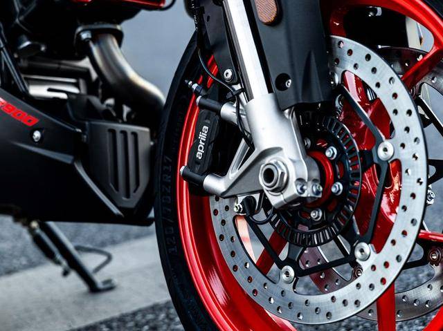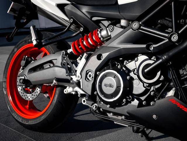 在減震器彈簧以及氣缸蓋罩上,Aprilia均采用紅色涂裝點(diǎn)綴,獨(dú)特鮮明的設(shè)計(jì)語(yǔ)言使其格外醒目,彰顯個(gè)性魅力。進(jìn)氣口巧妙置于油箱兩側(cè),與運(yùn)動(dòng)街車(chē)標(biāo)志性的裸露車(chē)架設(shè)計(jì)相得益彰,在視覺(jué)上營(yíng)造出一種極具沖擊的力量美感。