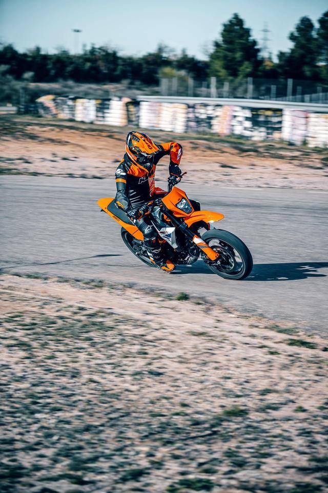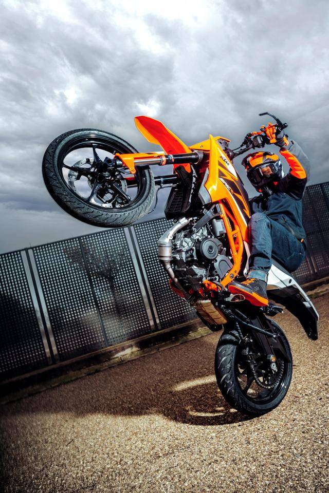 * 125 SMC R 搭載一副與新一代 125 Duke 相同的水冷四沖程單氣缸、SOHC 四氣閥的發(fā)動機(上一代平臺采用 DOHC),這是排氣量最小的 LC4c 動力單元,缸徑、行程為 58 mm x 47.3 mm,排氣量 124.9 cc,兩個版本車型的峰值動力輸出均為 11 kw(歐洲法規(guī)對 125 這一排氣量級別限定的最大動力輸出);