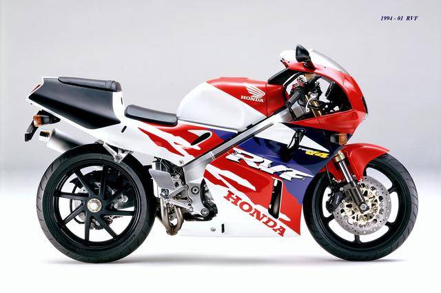 7、屬于 400 cc 級別第五代 V4 車型(前四代分別為 NC13、NC21、NC24、NC30)的 RVF(RVF400RR,工廠編號 NC35)在 1994 年一月首次發(fā)布。該車搭載最后一代的 NC13E 發(fā)動機,型式上仍為盡可能降低一次振動的 V 型 90 度設(shè)計,四氣缸、DOHC 每氣缸四氣閥,缸徑、行程保持不變,配氣結(jié)構(gòu)的進氣口內(nèi)徑和形狀經(jīng)過更新,進氣歧管修改為前后不規(guī)則形狀的設(shè)計,以進一步提高進、排氣效率。此外,六檔變速齒輪箱的 1 到 3 檔采用了低減速比的設(shè)計,讓騎行變得更具運動感 —— 該設(shè)計更多的是為了彌補當?shù)胤ㄒ?guī)的編號、峰值馬力被降到 53 匹之后 “ 運動感的損失 ”;