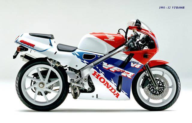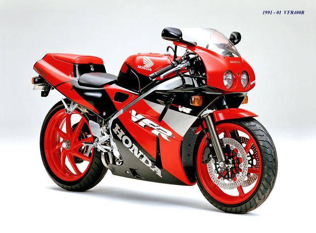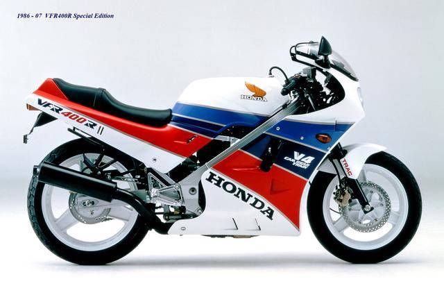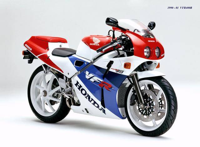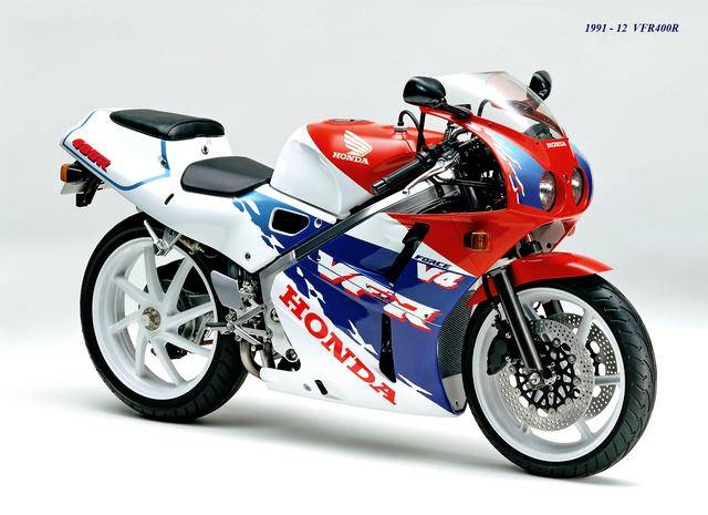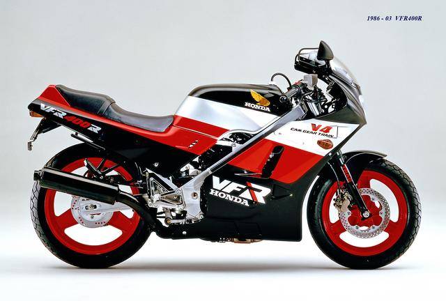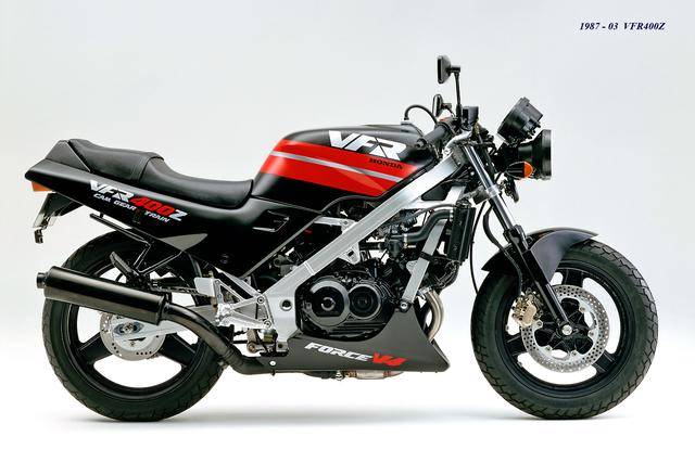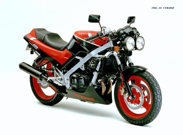 2、在 1984 - 1986,Honda 的工廠賽車 RVF750 連續(xù)三年奪得了 FIM WEC世界耐力錦標賽的年度總冠軍;與此同時,廠方也在本土的比賽里投入 TT-F3/SS400 規(guī)格的 RVF400 工廠賽車參賽。在 1986 年三月,借著在 WEC的兩連冠,Honda 向本土市場發(fā)布了全新的 VFR400R 跑車、VFR400Z 運動街車(NC21)。兩個車型具有全新設(shè)計的承載式車架、有著近代運動車型的外觀風(fēng)格,盡管發(fā)動機仍叫做 NC13E、沿用了原有的缸徑和行程,但內(nèi)部經(jīng)過大幅改進,標志性的變化是將凸輪軸的驅(qū)動方式,從此前的時規(guī)鏈、修改為讓人津津回味的齒輪組驅(qū)動,口徑為 30 mm 的化油器,最大動力輸出也提高至 59 匹;