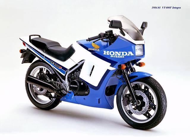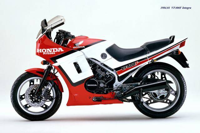 1、第一個車型是 1982 - 1984 VF400F,1984 年一月發(fā)布最后一次更新之后(帶全包圍式整流罩的 VF400 Integra),VF400F 停產(chǎn);