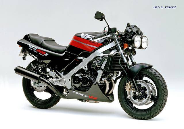 在 1982 年三月、推出了第一波量產(chǎn) V4 車型 —— 街車風(fēng)格的 VF750S Sabre 和巡航/太子車風(fēng)格的 VF750C Magna 之后,同年的十二月,Honda 推出了街跑車風(fēng)格(帶車頭小型整流罩的街車款)、主要面向日本本土市場的 VF400F(工廠編號 NC13),從而開啟了這個最低排氣量 V4 機器在此后幾十年的市場征程。