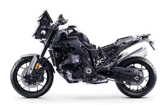 4、采用一副承載式設(shè)計的鋼制車架。車架的主體結(jié)構(gòu)來自上一代的 1290 Super Adventure 系列,但車架主材料的鋼管直徑和管壁厚度經(jīng)過修改,以實(shí)現(xiàn)更好的設(shè)計剛度:與此前的 1290 版本車架相比,新車架的縱向剛度增加了 13%、橫向剛度增加了大約 23%,扭轉(zhuǎn)剛度則大幅增加了約 73%;新的車架提高了直線狂加速和轉(zhuǎn)向時的穩(wěn)定性,同時也讓整個車架/底盤實(shí)現(xiàn)了對騎士的最大反饋;