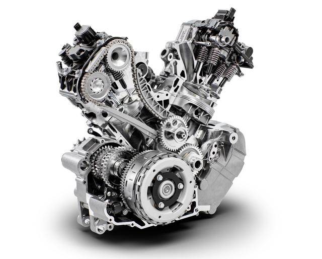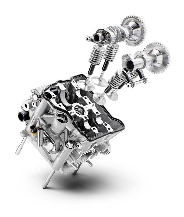 2、這副 LC8 發(fā)動機(jī)的 Camshift 可變氣閥正時控制系統(tǒng),每個氣缸配氣系統(tǒng)內(nèi)的進(jìn)氣凸輪軸、具有兩個不同高度的凸角,其中一個是用于低轉(zhuǎn)速時的凸角,以實(shí)現(xiàn)更平穩(wěn)、更有扭矩感的動力傳遞;另一個是用于轉(zhuǎn)速高于 6500 rpm 時的高速凸角,以實(shí)現(xiàn)機(jī)器的峰值功率輸出。不同凸角之間的 “ 換檔 ” 切換只需要大約 3 - 5 毫秒,這對騎士來說、幾乎沒有產(chǎn)生明顯的感覺。此外,新的這副 LC8 發(fā)動機(jī)具有更佳的耐用性,與上一代的 1290 Adventure 相比,發(fā)動機(jī)的保養(yǎng)間隔從 3 萬公里、提高至現(xiàn)在 6 萬公里之后,才需要對氣閥間隙進(jìn)行檢查;
