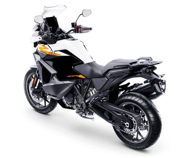車體采用一副鋼制的車架,全新的車身設(shè)計、采用了家族臉譜化外觀的 LED 前大燈,WP 配套的新型電子感應(yīng)半主動控制前后懸掛系統(tǒng),采用了觸控感應(yīng)技術(shù)、全新的 8 英寸 TFT 全彩色數(shù)字式儀表板(V80),前 19、后 17 英寸直徑的車輪,標(biāo)配了 Dunlop 的公路運(yùn)動型輪胎。
