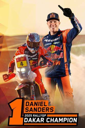 在比賽的后半段,桑德斯逐漸拉開了與競爭對(duì)手的差距。他憑借著穩(wěn)定的發(fā)揮和出色的領(lǐng)航能力,成功超越了其他車手,并在多個(gè)賽段中保持了領(lǐng)先地位,并最終奪冠。丹尼爾·桑德斯在賽后采訪中表示,“當(dāng)我從沙丘中駛出……我能看到營地,那一刻,我全身瞬間起了雞皮疙瘩,緊張至極。我簡直不敢相信。所有的情緒開始涌上心頭,我看到了終點(diǎn)線。這是世界上規(guī)模最大、最具挑戰(zhàn)性的摩托車與越野賽事。我贏得了六日國際耐力賽,現(xiàn)在又拿下了達(dá)喀爾拉力賽,我的職業(yè)生涯中的所有目標(biāo),以及我一直想要實(shí)現(xiàn)的一切,都已經(jīng)達(dá)成,這是一項(xiàng)巨大的成就。對(duì)于車隊(duì)、我的家人、朋友、女友,以及所有見證了我一路走來的起伏經(jīng)歷的人來說,這一切終于有了回報(bào)。他們一直相信我能做到,即便在過去三年里經(jīng)歷了許多低谷,但現(xiàn)在我們迎來了勝利,所有的努力都得到了回報(bào)。”