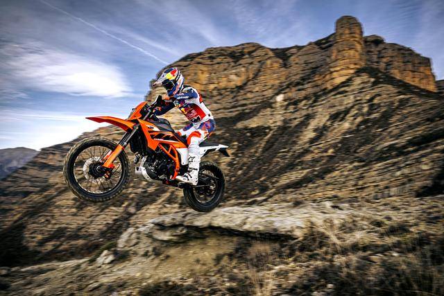 配置和機(jī)械規(guī)格上,125 Enduro R、390 Enduro R 分別對應(yīng) 125 SMC R、390 SMC R,屬于同平臺的車型。125 版本共享一副來自運(yùn)動(dòng)街車 125 Duke 的水冷四沖程單氣缸、SOHC 四氣閥的發(fā)動(dòng)機(jī),排氣量 124.9 cc,峰值動(dòng)力輸出均為 11 kw;390 版本共享了一副來自 390 Duke 運(yùn)動(dòng)街車的水冷四沖程單氣缸、DOHC四氣閥的發(fā)動(dòng)機(jī),排氣量 398.7 cc,最大動(dòng)力輸出均為 33 kw(約 45 匹)。
