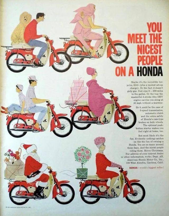 因?yàn)镃UB50,1958年在本田的歷史中烙上了永遠(yuǎn)不能磨滅的印記——這款正與市場(chǎng)需求合拍的全新車型一經(jīng)推出便贏得了用戶的肯定,銷量節(jié)節(jié)上升并成功打入美國(guó)市場(chǎng)。定位精確、性能優(yōu)異的“超級(jí)幼獸”,在為本田帶來(lái)滾滾財(cái)源的同時(shí),也在世界范圍內(nèi)創(chuàng)造了一個(gè)單一車款銷量的傳奇。小小的“幼獸”成就了大大的本田,沒(méi)有當(dāng)初的CUB就沒(méi)有今天的本田。
