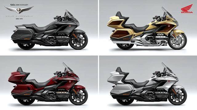 新的 2025 金翼系列有多個版本:沒有配備尾箱和乘客后靠背沙發(fā)、巡航車風格的 Gold Wing(有手動六檔和 DCT 雙離合七檔、兩個版本);旅行車風格的 Gold Wing Tour 系列,根據不同配置、有三個版本(手動六檔,DCT 雙離合七檔,DCT Air bag 氣囊版)。除了配置上的差異之外,為了慶祝金翼五十周年,廠方還額外推出帶有 Since 1975 “ 自 1975 以來 ” 標志的五十周年紀念版(Gold Wing 金翼系列只有五十周年版、沒有標準版,Gold Wing tour 金翼旅行系列有五十周年版和標準版)。