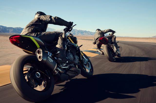 2025款Speed Triple 1200 RS搭載了1160mL水冷直列三缸發(fā)動機,最大馬力提升至183hp(10750r/min),最大扭矩達到128N·m(8750r/min),相比前代車型,動力輸出更加平順且富有沖擊力。凱旋在發(fā)動機的研發(fā)中融入了Moto2™賽事發(fā)動機技術,使得發(fā)動機不僅更加緊湊耐用,還優(yōu)化了動力釋放。此外,新型流線型排氣系統(tǒng)以及可選裝的Akrapovi?消聲器,不僅提供了更大的排氣流量,還保留了Speed Triple系列標志性的“三缸咆哮”,每一次扭動油門都令人熱血沸騰。